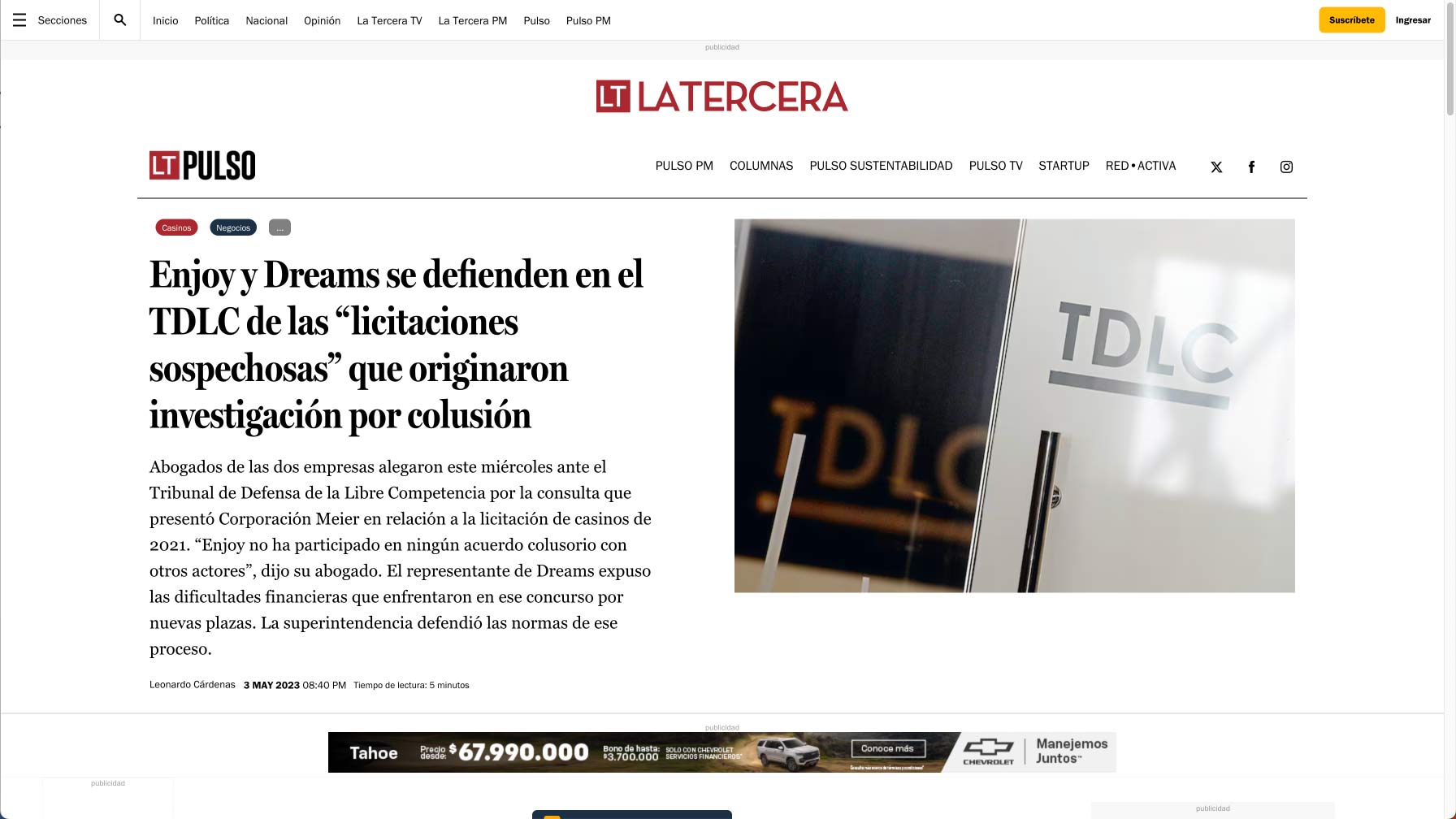 kmalis In Digital, Prensa Escrita Enjoy y Dreams se defienden en el TDLC de las “licitaciones sospechosas” que originaron investigación por colusión Fuente: La TerceraLink: Noticia completaRead More